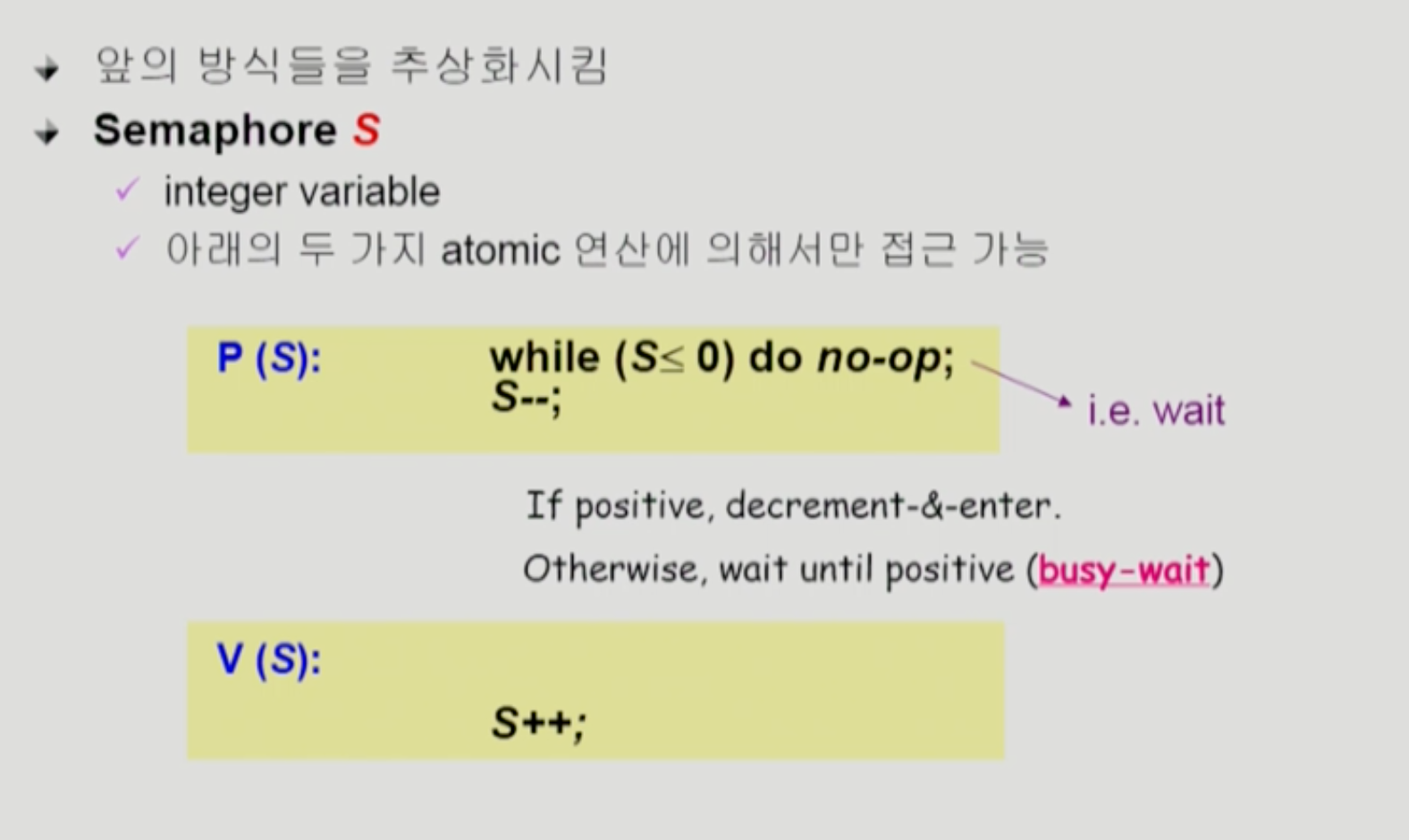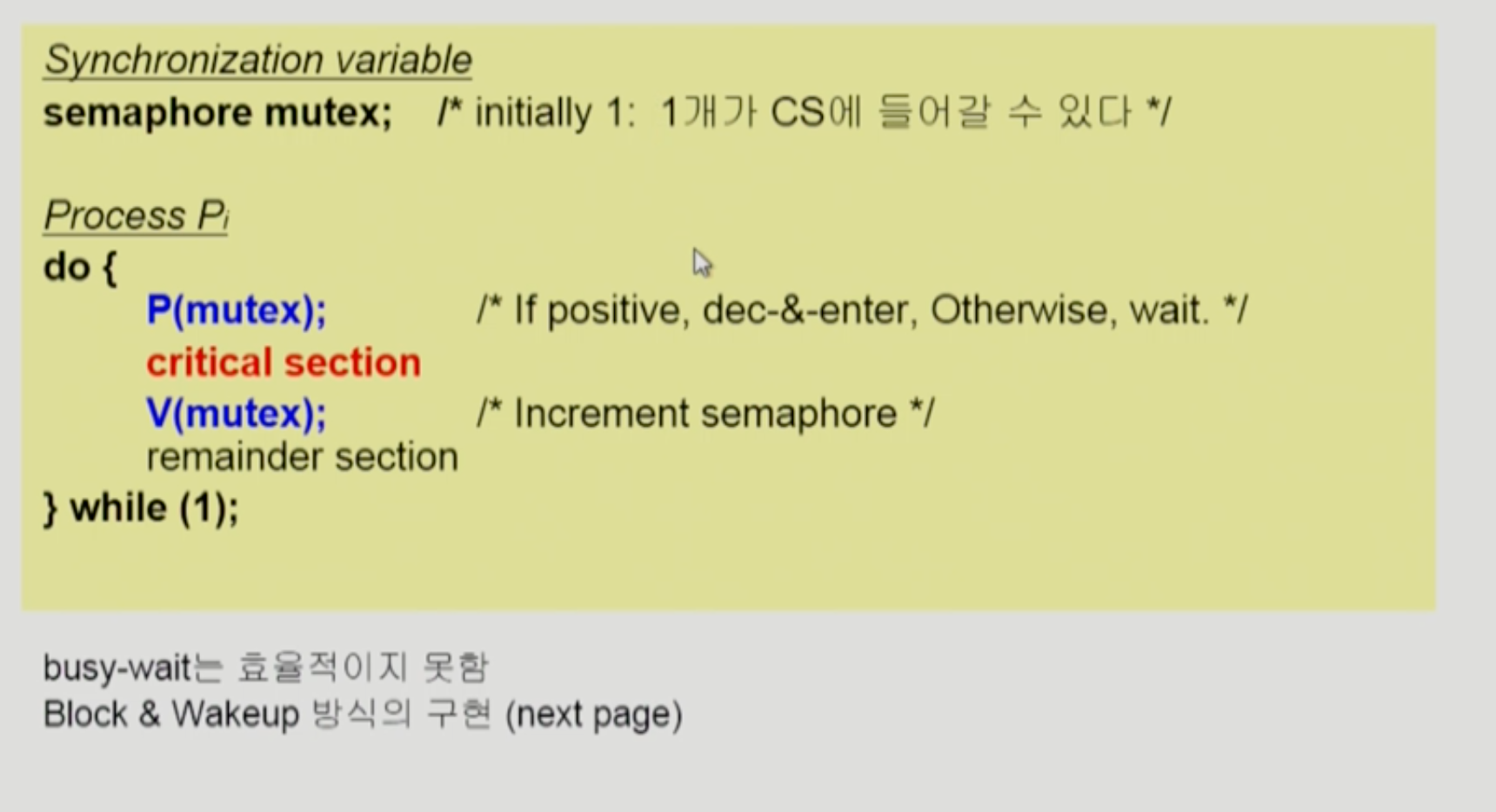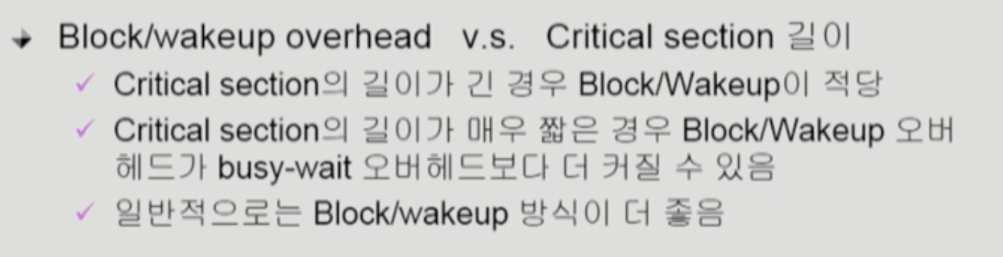하지만 Busy Waiting(spin lock)이라는 문제 발생 가능성 있음.
