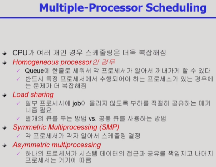 현대에는 강제로 CPU를 빼앗는 스케줄링 방법(선점형)이 주로 사용된다.