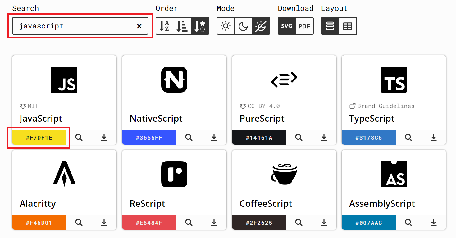 해당 사이트에서 사용하고 싶은 아이콘을 검색하고 컬러를 복사할 수 있다. 😃