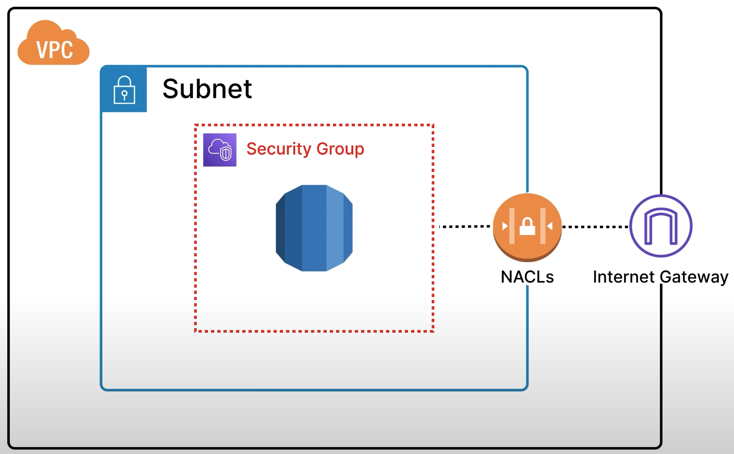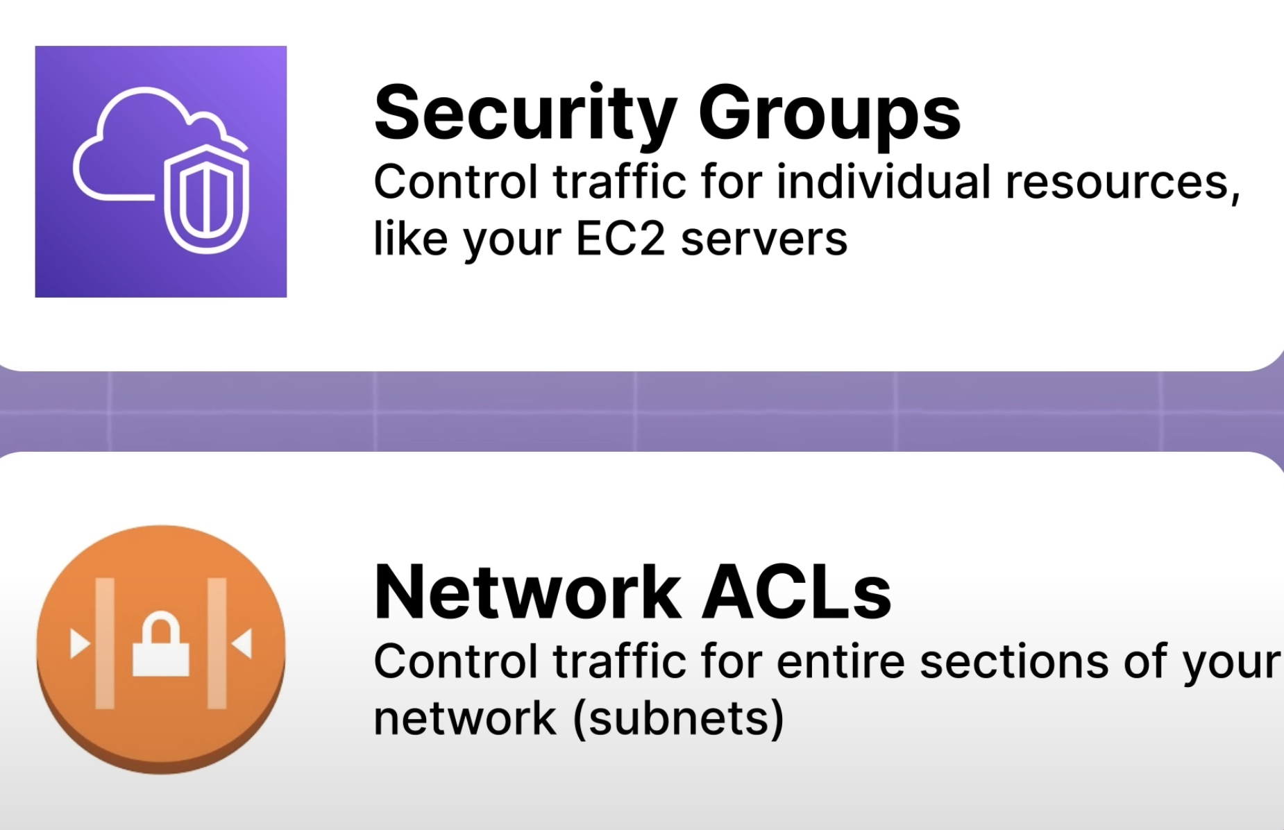 NACL은 서브넷 수준에서, 보안 그룹은 인스턴스 수준에서 트래픽을 제어합니다.