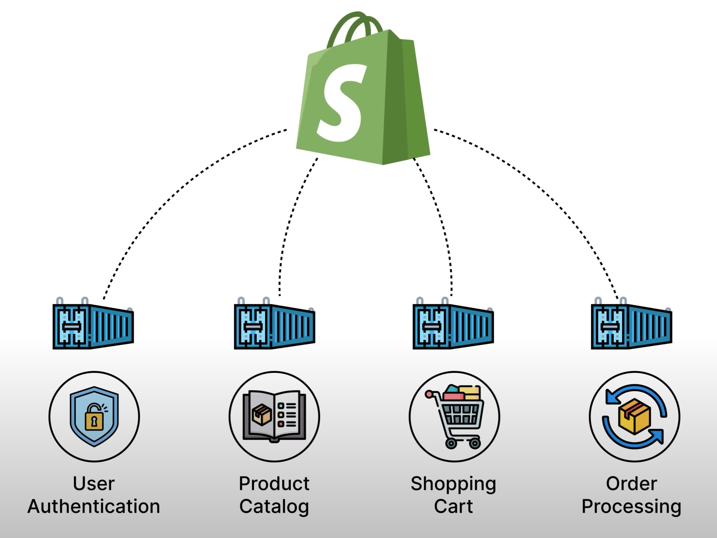 마이크로서비스(Microservices) 아키텍처(큰 앱을 작고 독립적인 부분으로 나누는 것)에 매우 적합합니다. 다른 부분의 독립적인 업데이트 및 확장이 가능합니다(예: 세일 기간 동안 상품 카탈로그 컨테이너 확장).
