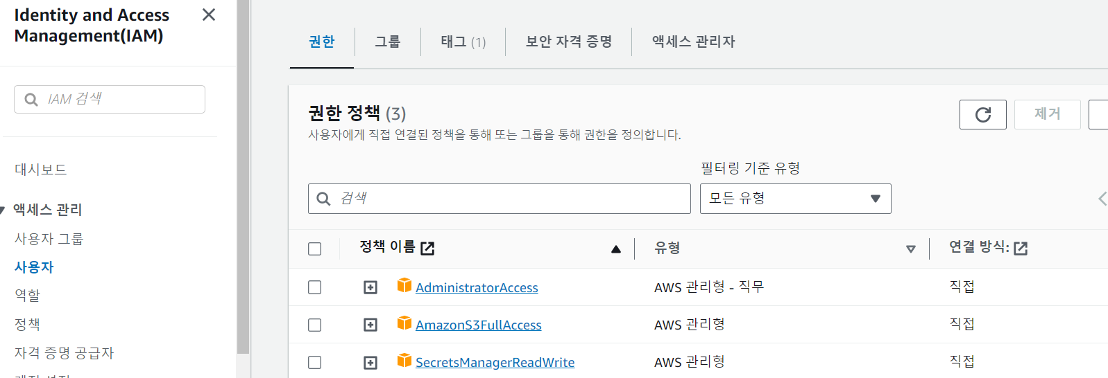 아래 방법은 IAM 생성 후 IAM 계정에서 진행되었습니다.