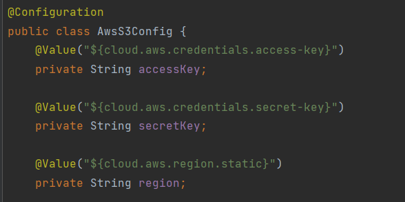 다음으로 다른 유형의 보안 암호에 대해 알아보겠습니다. 다른유형의 보안암호는 @Value("${~ ~ ~ ~}") 형태로 사용하게 됩니다.