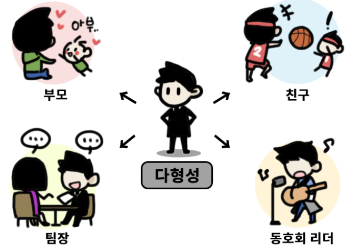 한 객체가 다른 여러 형태(객체)로 재구성되는 것을 말합니다.
