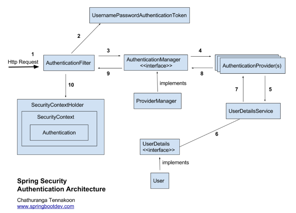 5번- AuthenticationProvider 에서는 UserDetailsService 를 호출하여 UserDetails 를 가져오게 됩니다.