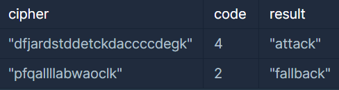 군 전략가 머쓱이는 전쟁 중 적군이 다음과 같은 암호 체계를 사용한다는 것을 알아냈습니다.