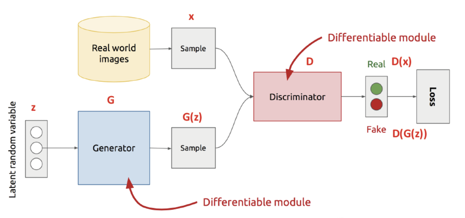 - 두 네트워크는 경쟁적인 관계에 있습니다. 생성자는 판별자를 속이려고 노력하고, 판별자는 생성자가 만든 가짜 데이터를 정확히 구분하려고 노력합니다.