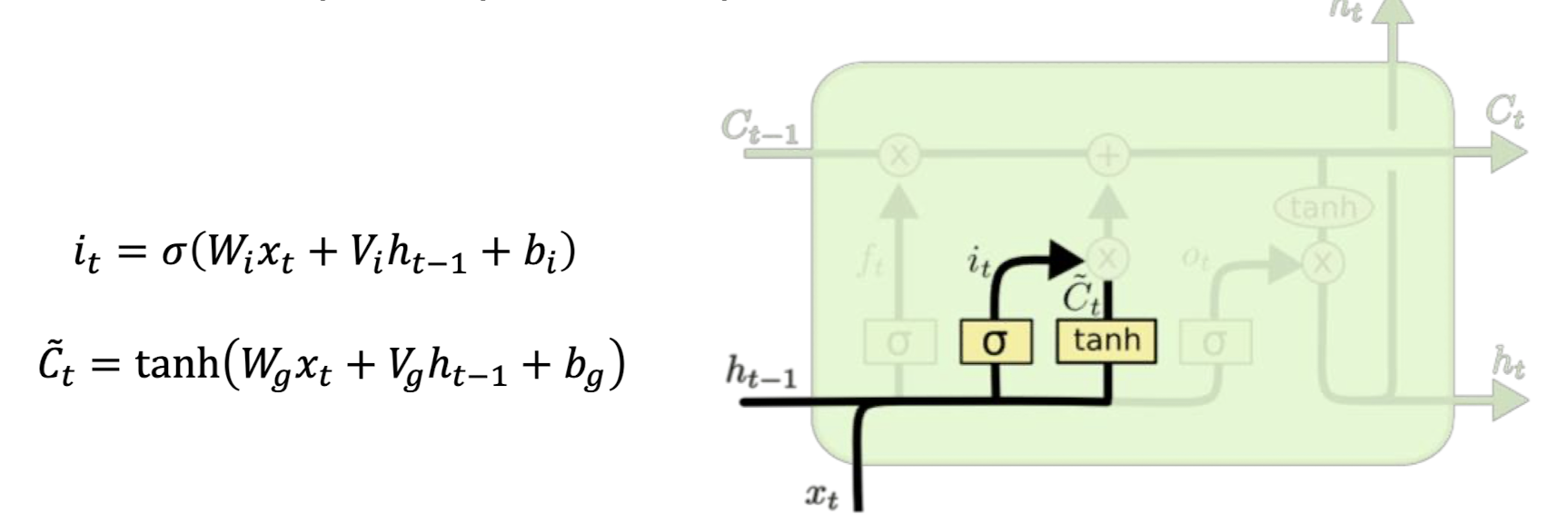 - 수식: (Ct~=tanh(Wgxt+Vght−1+bg))