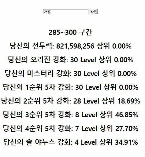 원래는 유저들의 평균 전투력,6차 스킬 강화 상태 등을 알려주는 것으로 구상했는데, 무언가 2% 부족했다.