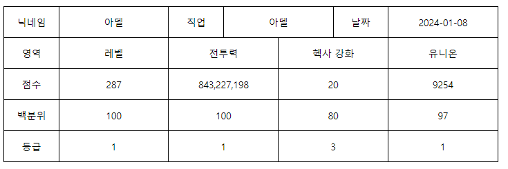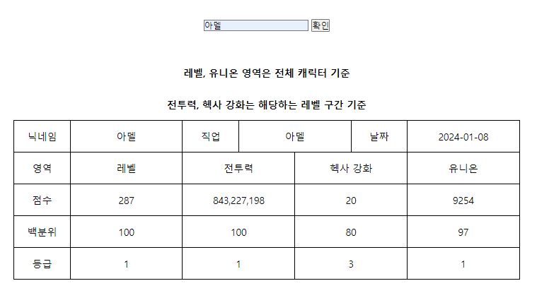 앞서 말한 대로 서비스를 위해 유저들의 전투력, 6차 강화 스킬 정보를 가져와야했다.