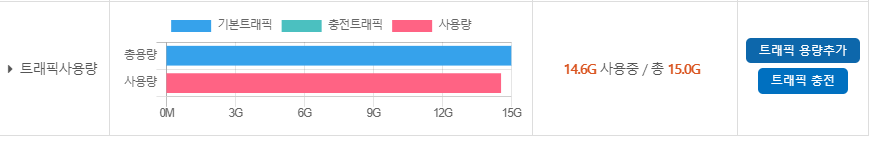 1/9 오후 5시에 기본 트래픽 15GB에 거의 근접하였다.