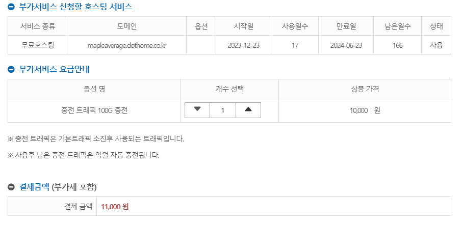 방금 추가 트래픽 긁었다.. (제일 작은걸 100GB로 해둔거 상술 아니냐..)