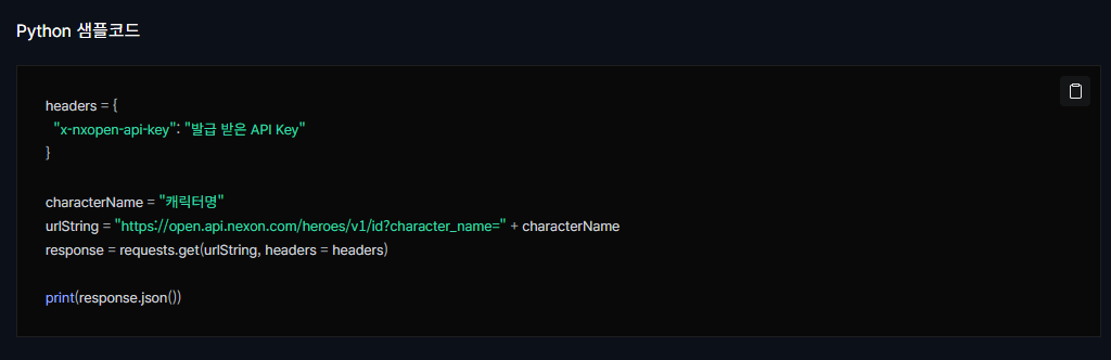 response = requests.get("https://open.api.nexon.com/maplestory/v1/id", headers = headers, params = params)