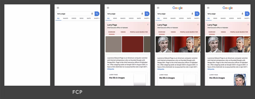 위 타임라인에서 FCP는 첫 번째 텍스트와 이미지 요소가 화면에 렌더링되는 두 번째 프레임에서 측정된다.