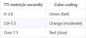 TTI는 페이지가 완전히 상호 작용 가능하기까지의 시간을 측정하고 그 기준은 다음과 같다.