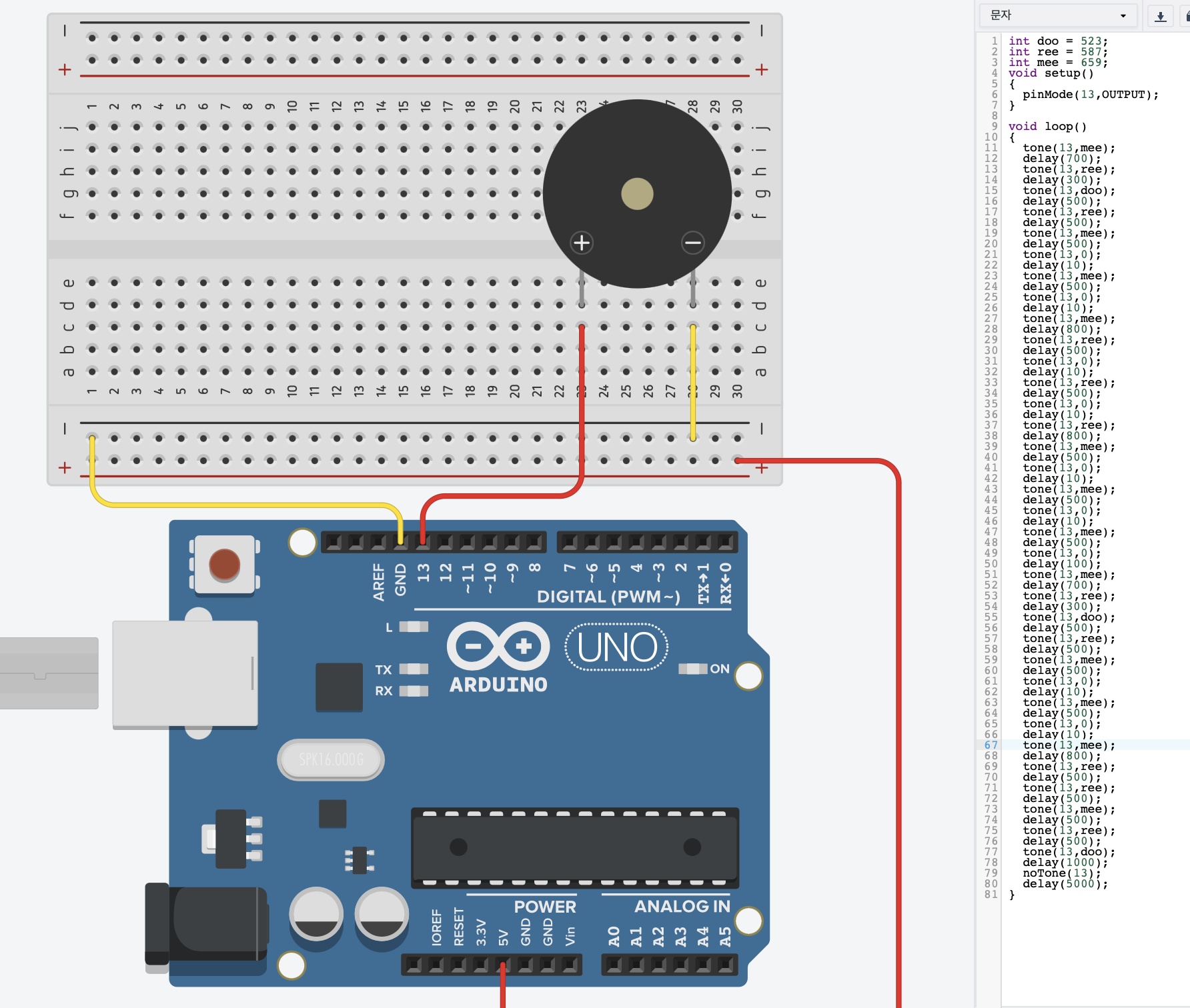 우리는 프로토타입 개발이라는 시점에서 약간 벗어나, 피에조 부저를 좀 더 능숙하게 다루기 위한 설계로 계획을 중도 변경하였다. 이 덕에, 떴다 떴다 비행기를 작곡할 수 있었다.