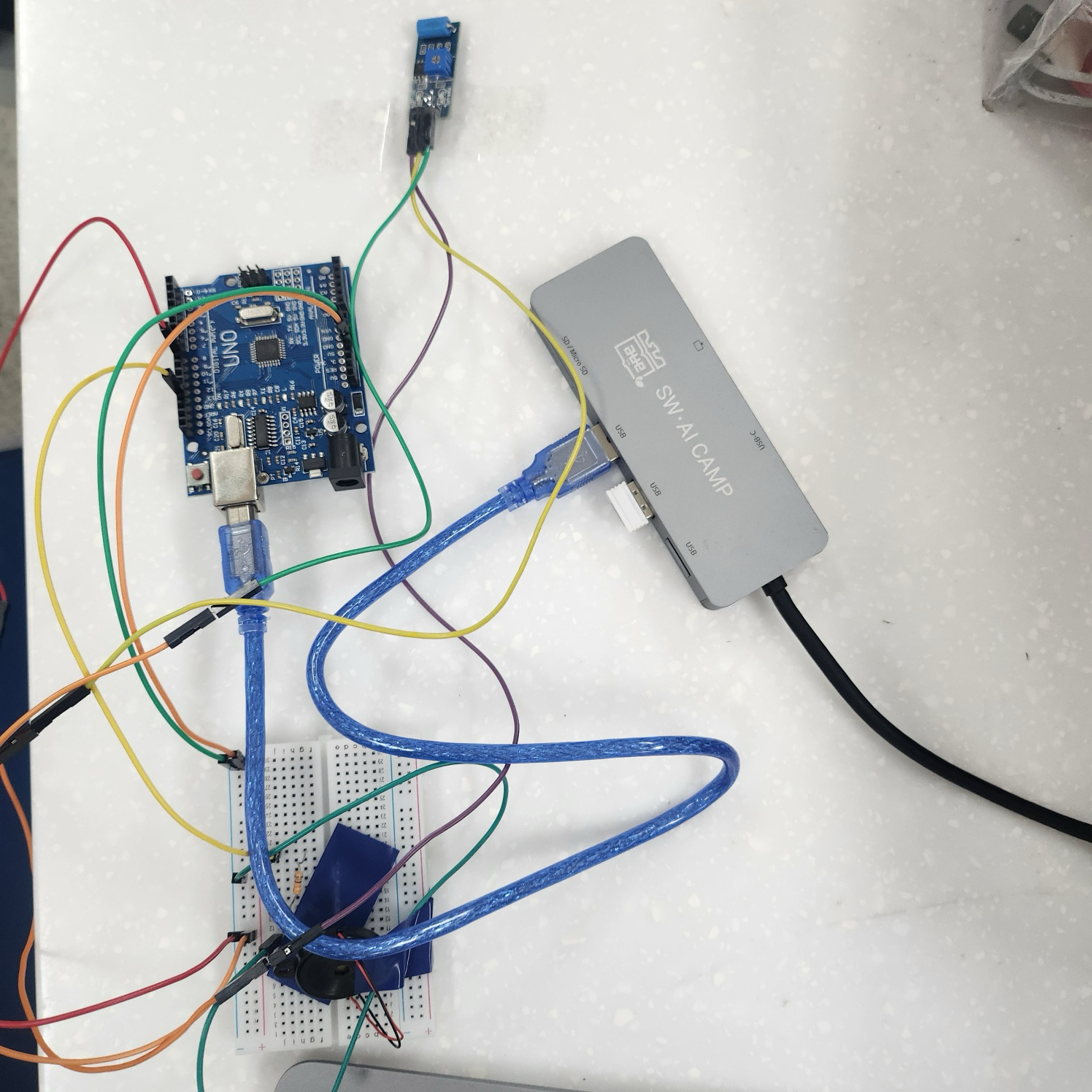 한 주 뒤, 학교 어딘가에 보관되어 있던 진동 감지 센서와 블루투스 모듈을 손에 넣으며 마침내 우리 프로젝트는 완전체로 거듭 날 수 있었다.