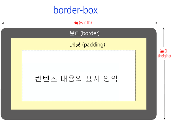box-sizing: border-box를 지정하면 해당 엘리먼트의 패딩과 테두리가 더는 너비를 늘리지 않습니다.