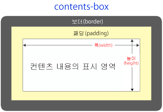 ▼ 아래 그림과 같이, content-box의 전체 폭은, 컨텐츠 내용의 폭과 패딩, 보더의 폭을 모두 더한 합계입니다.