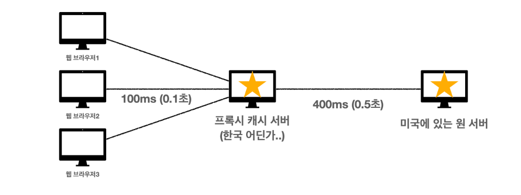 프록시 서버는 캐시/보안/트래픽 분산등의 역할을 수행가능합니다.