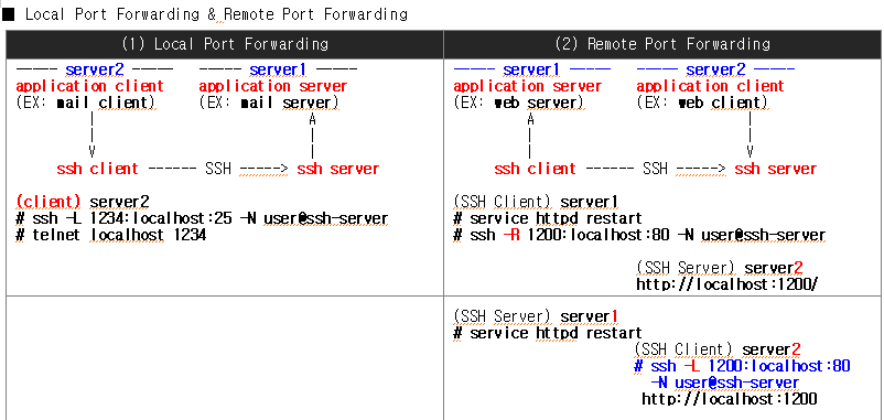 # ssh -R 1200:localhost:80 -N user@ssh-server -> 터널 열어주기
