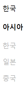 .asia > h4 ~ p { /*h4와 같은 수준에 있는 모든 p (기준 이전 형제는 포함되지 않음)*/