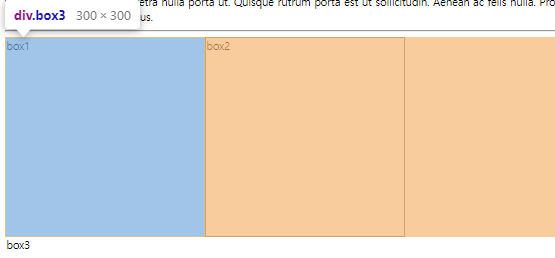 그럼 위와같이 box3의 테두리가 사라진 것처럼 나타나는데 이는 테두리가 사라진 것이 아닌 box1 밑에 가려진 것 (상자 자체는 가려졌는데 텍스트만 밀려서 나온 것) = box1이 위로 올라가면서 기존 box1 자리를 box3가 차지