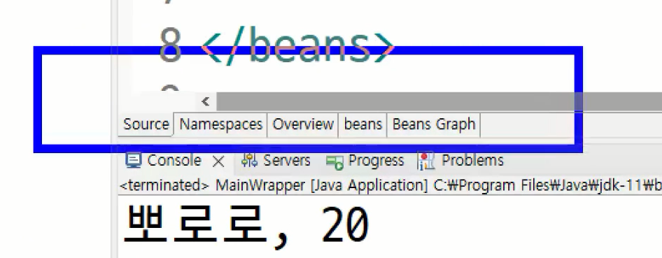 // <bean> 태그로 정의된 객체 가져오기