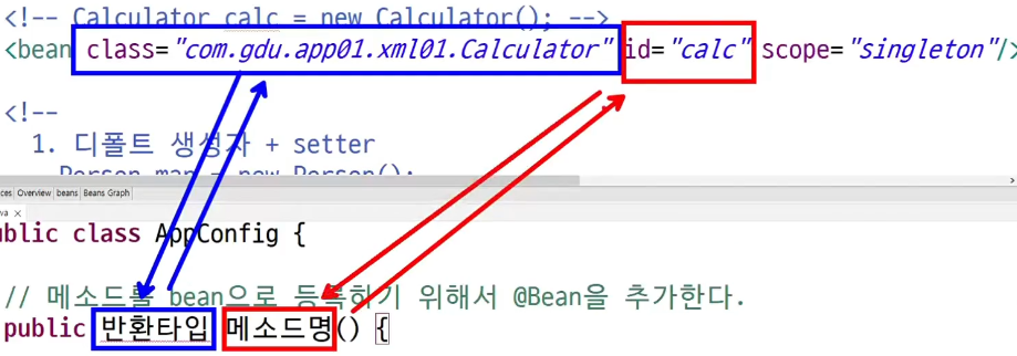 public Calculator calc() { // 반환타입 = 클래스, 메소드 이름 == bean 이름