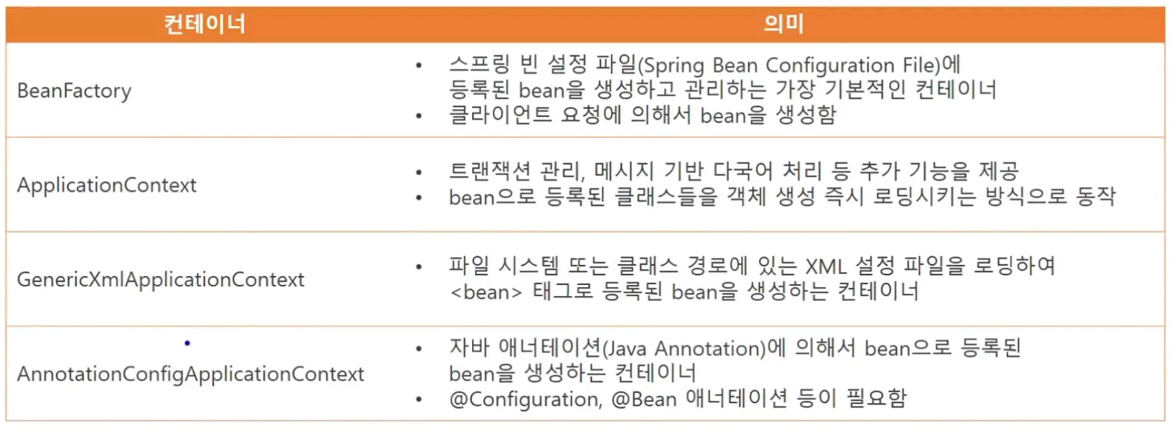 AnnotationConfigApplicationContext은 애노테이션으로 만들어놓은 bean 전용으로 생성해줌
