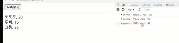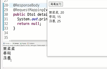 Dto로도 똑같은거 했다. 클릭하면 하나씩 나옴. dto는 객체 형태로 전달해줌
