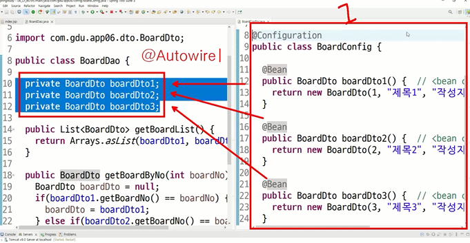 타입이 BoardDto로 같은게 3개나 있기 때문에 이름이 같아야 주입될 수 있다