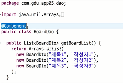 public BoardDto boardDto3() { // <bean class="BoardDto" id="boardDto3" />