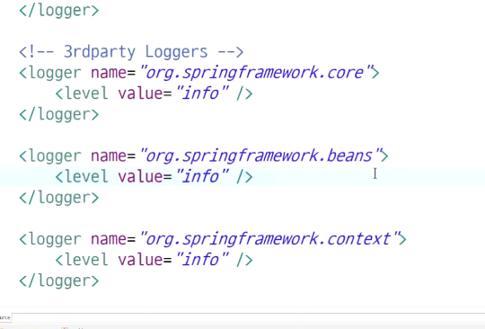 name으로 지정해준 패키지의 로그는 level value로 지정한 수준으로 찍으라고 적어준 것. 여기선 전부 인포레벨