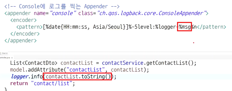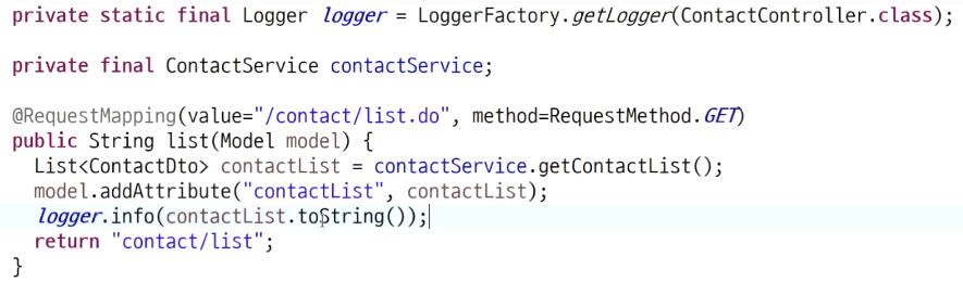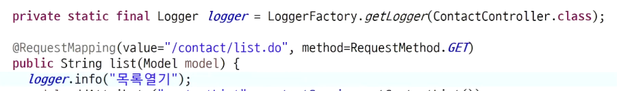 // ContactController를 실행할 때 org.slf4j.Logger가 동작한다.