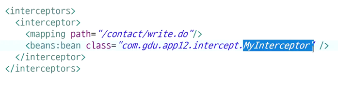<beans:bean class="com.gdu.app12.intercept.MyInterceptor" />
