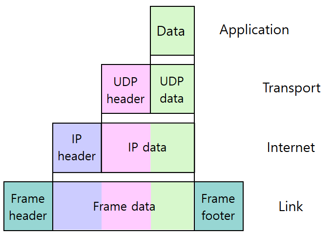 아래의 그림과 같이 L2 Frame의 Body 안에, L3 Packet, 그리고 그 안에 L4 TCP/UDP의 정보가 들어있다.
