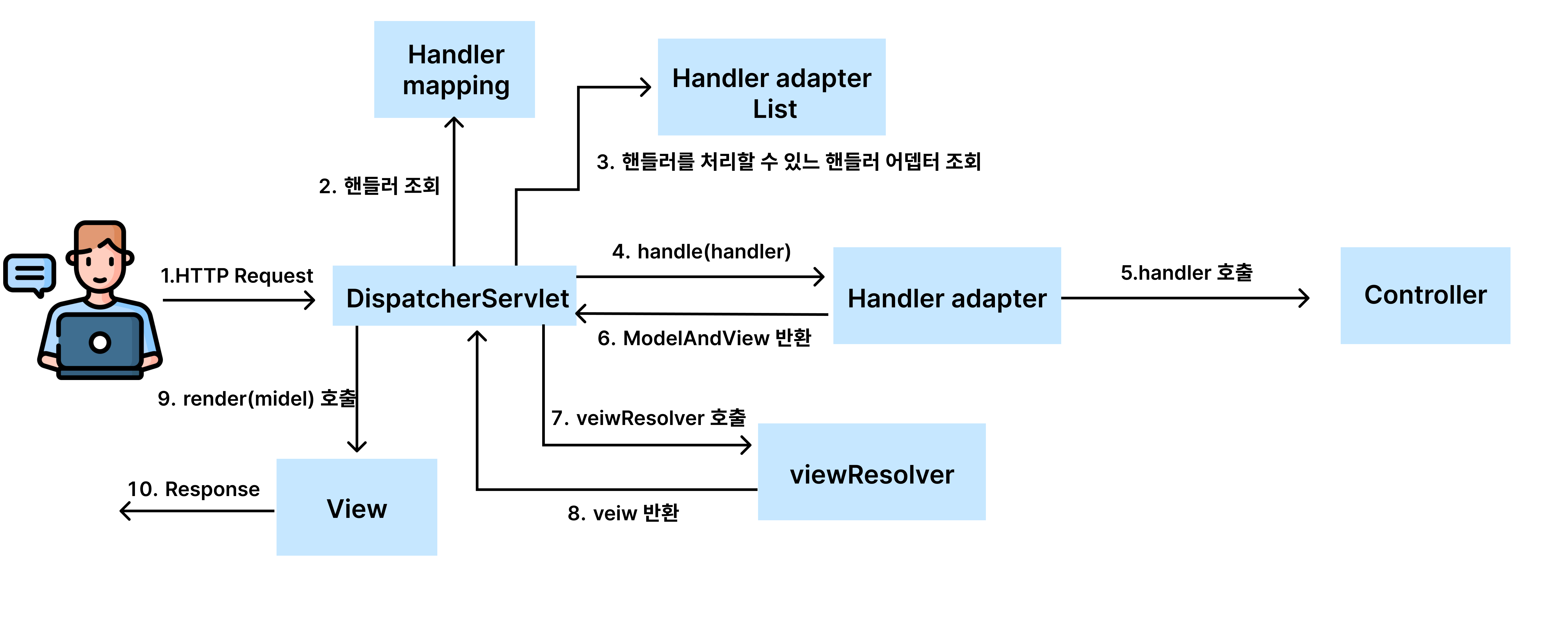 기존의 서블릿도 당시에는 나름 획기적인 기술이였으나 기존의 서블릿은 객체를 일일히 생성하고 web.xml 문서에 기록해줘야 했다.게다가 매번 공통적으로 처리해야할 작업이 많아 중복 코드가 많아졌고 HttpServlet에 의존하기 때문에 의존성 문제까지 존재했다. Dispatcher Servlet은 이러한 문제들의 상당 부분을 해결해준다.