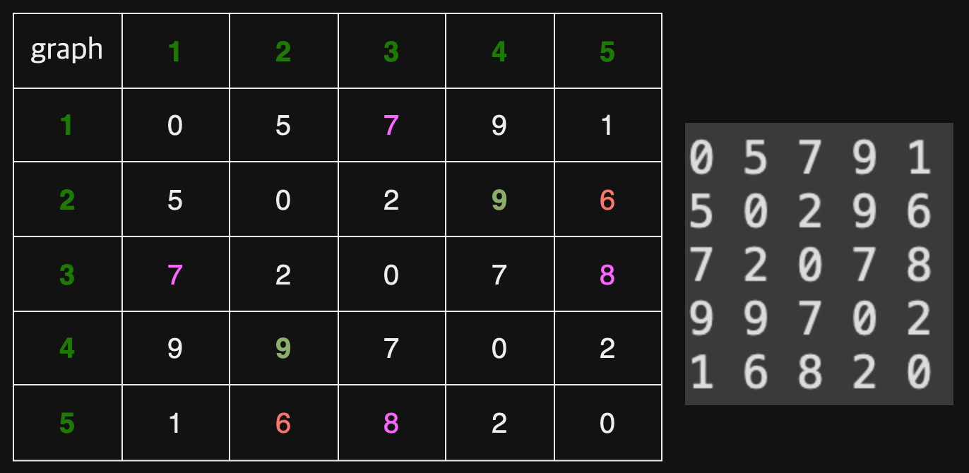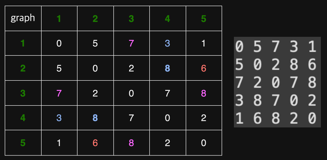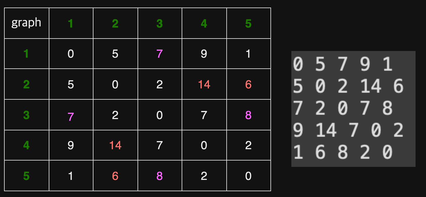 graph[y][x] = weight; // 대칭되게 값을 넣기