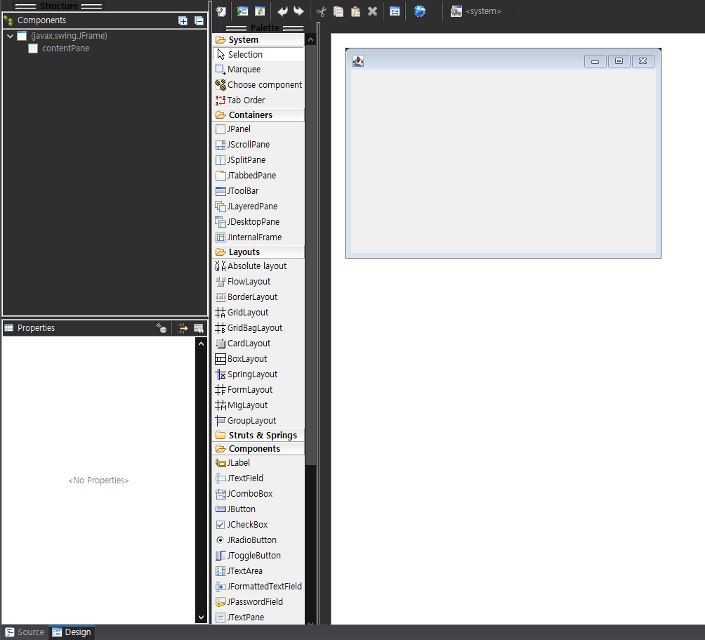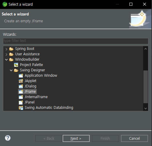 Src > New > Other > WindowBuilder > Swing Desigenr > JFrame
