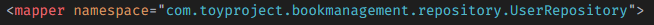 <insert id="saveUser" parameterType="com.toyproject.bookmanagement.entity.User">