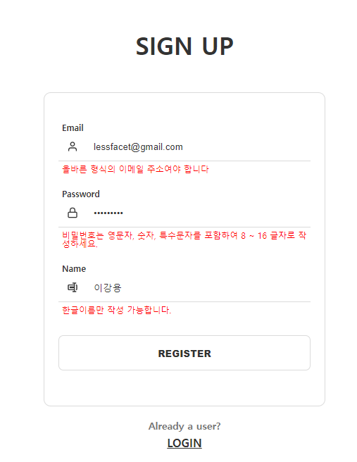 는 각각 전달된 User의 객체의 email, password, name, provider속성