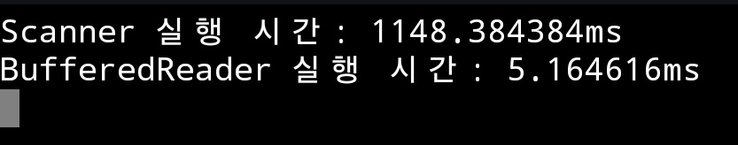 → Scanner 는 입력할 때마다 정규 표현식을 사용하여 파싱하는 과정이 존재하기에 속도가 느림