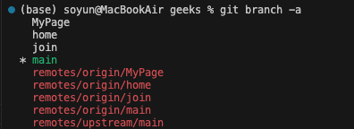 그러나, 브랜치가 여러개 있을때 내가 사용하고있는 branch는 *와 색깔이 함께 표시되어 한눈에 알 수있다.