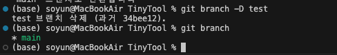 이럴때 사용하는 것이 git branch -D 명령어이다.