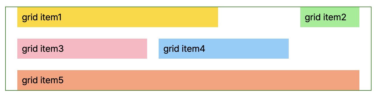 grid-column/grid-row: 그리드 아이템을 그리드 안에서 어느쪽으로 위치할지 지정해줍니다. 아이템이 몇개의 열이나 행을 차지할지 지정해줄 수 있습니다.
