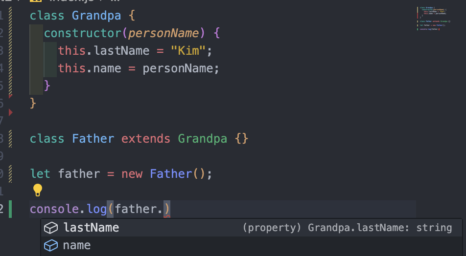 위 사진처럼 Grandpa의 속성이 Father에도 있는 것을 볼 수 있다.