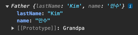 이제 그럼 new Father(); 할 때 파라미터를 입력하면 this.name 속성에 들어가게 된다.