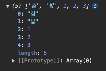 b는 "김밥"이라는 값을 가진다.let c = [...b, ...a];: