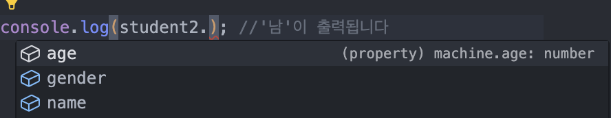 console.log(student1.gender);//'남'이 출력됩니다